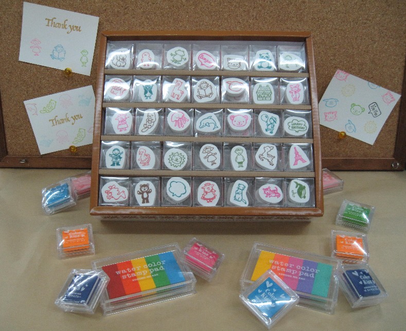 スタンプ台もかわいい色を!